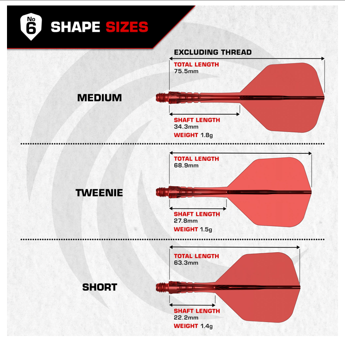 The Force 90 Vortex flights are made from a high-grade composite material, giving every player the peace of mind of having a consistent performance with every throw. These flights include a grip zone on the stem to aid players who like to hold the stem when throwing. The Force 90 Vortex range is being launched in two popular shapes (Standard No. 2 and Shape No. 6) and three different sizes (short, tweenie and medium) and in several colour options to suit the style of every player (solid black/white and transparent black/red/blue/green/purple/clear/neon orange/neon yellow).
